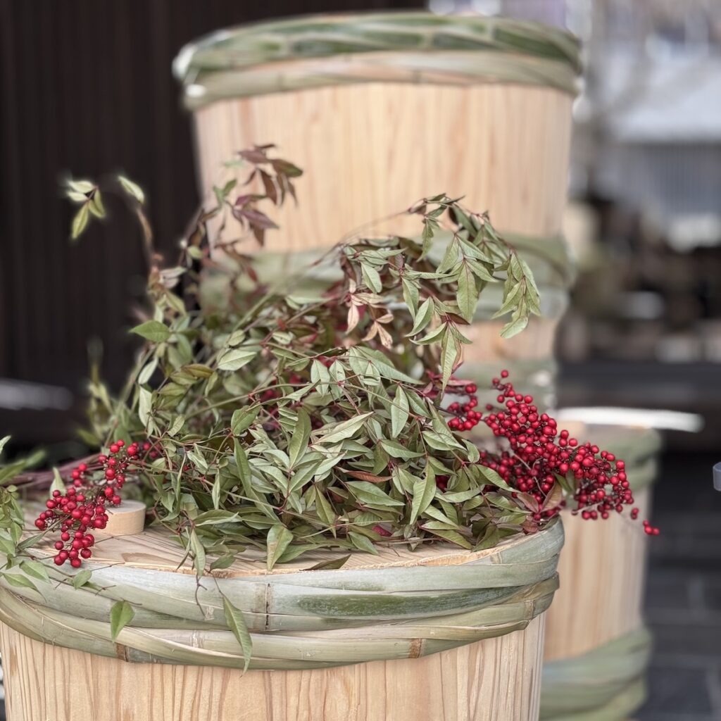 酒を買いに行った。酒蔵の前に樽が積み上げられておりその上に南天の実が飾られている。ナンテンは難を転ずるが故に魔除けとして古くから鬼門に植えられてきた。節分も過ぎ、鬼も退散した後、日に日に日差しが強くなってくると、いっそう春が待ち遠しくなる。